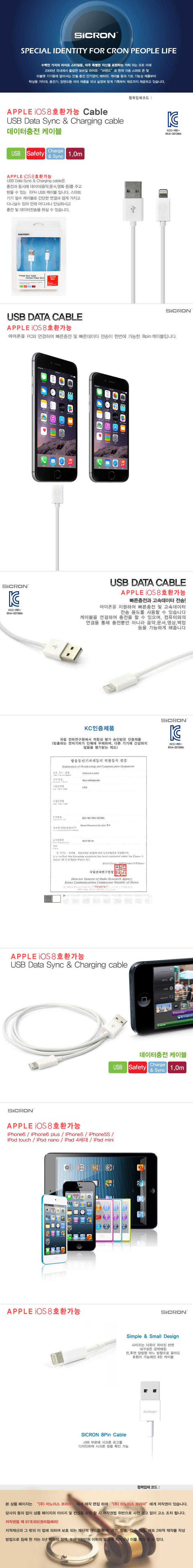아이폰용 USB충전 케이블(애플8핀/화이트/UC-120I8P/Sicron)