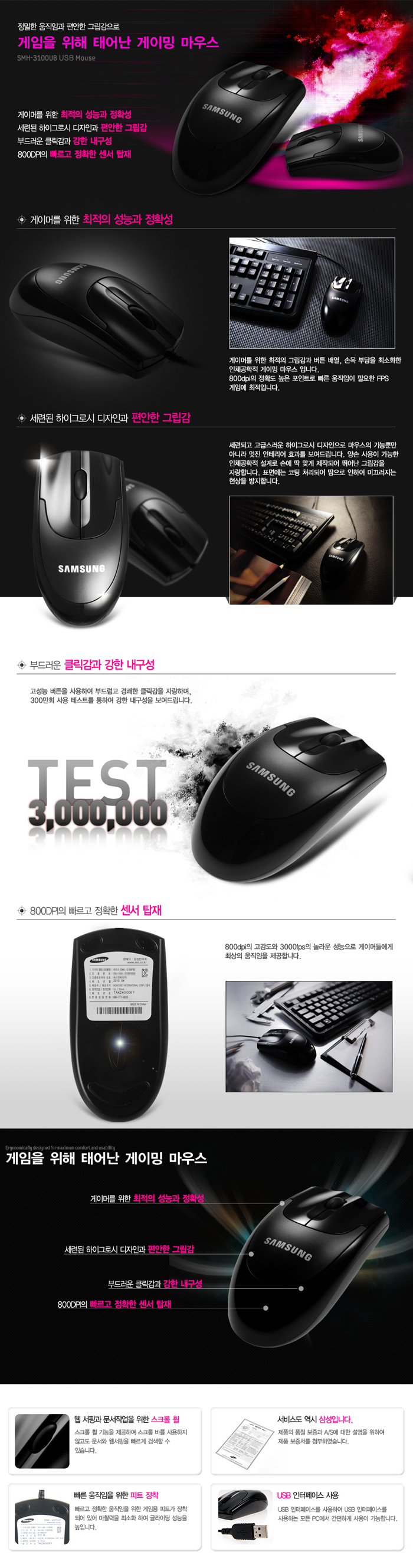 ■ 품명 및 모델명 - 유선 마우스 (SMH-3100UB / 3버튼)