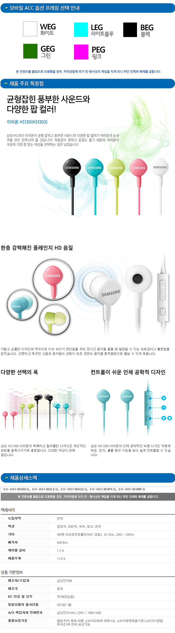 커널형 이어폰(HS130/화이트/삼성)