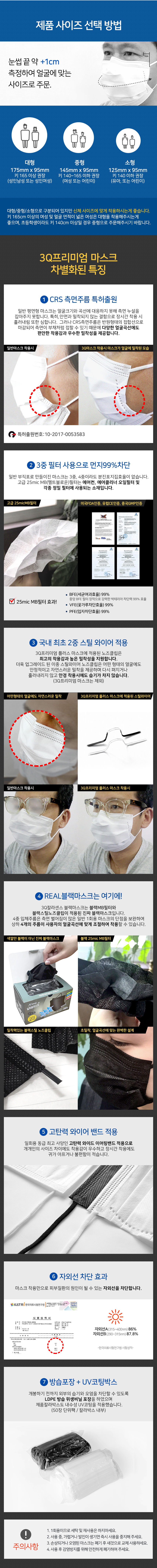 3Q 프리미엄 일회용 마스크(중형/50장)