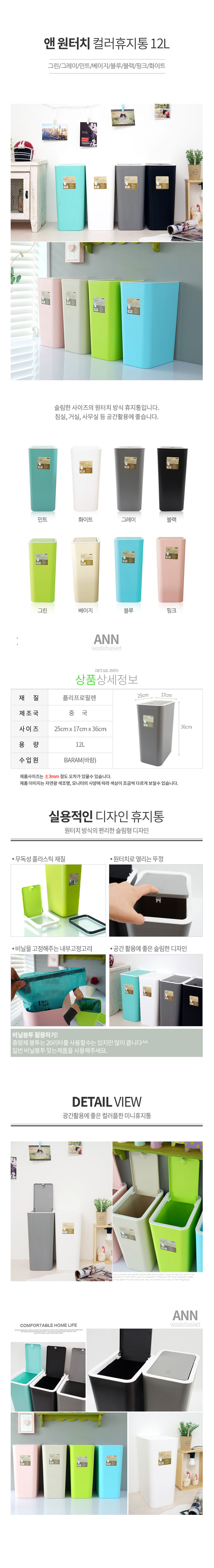 사각휴지통(35L/블루/창신리빙)
