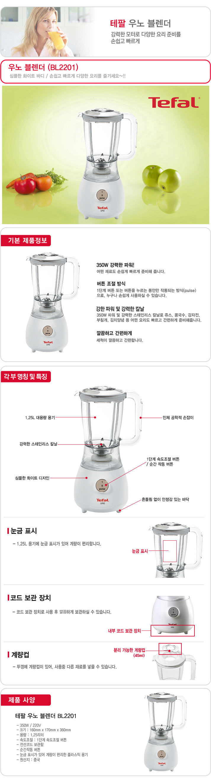 350W 강력한 파워로 어떤 재료도 손쉽게 빠르게 준비해 줍니다.