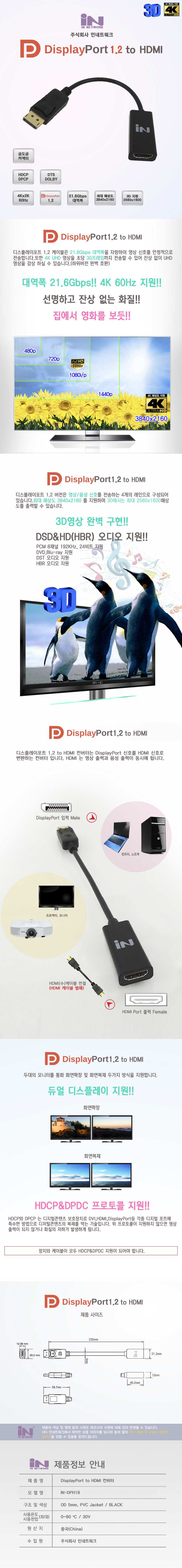 ■ 상품명ⓢDisplay 1.2 to HDMI 컨버터(IN-DPH19/IN)