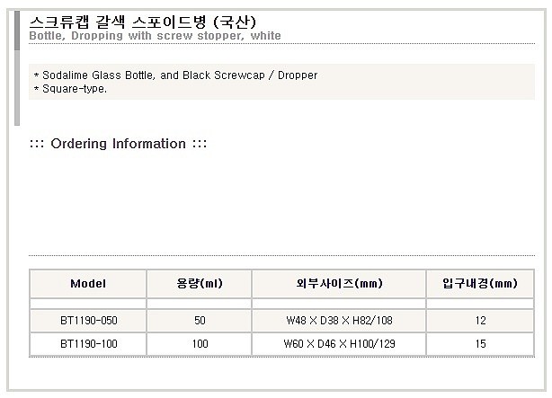 ■ 품명및모델명 : [업체별도배송]스크류캡 스포이드병(갈색/BT119050/50ml/나비PB)