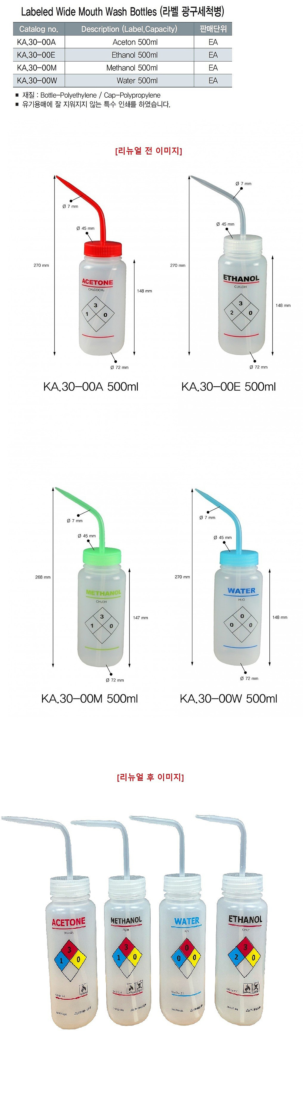 ■ 품명및모델명 : [업체별도배송]라벨 세척병(KA.30-00E/500ml/Ethanol/나비PB)