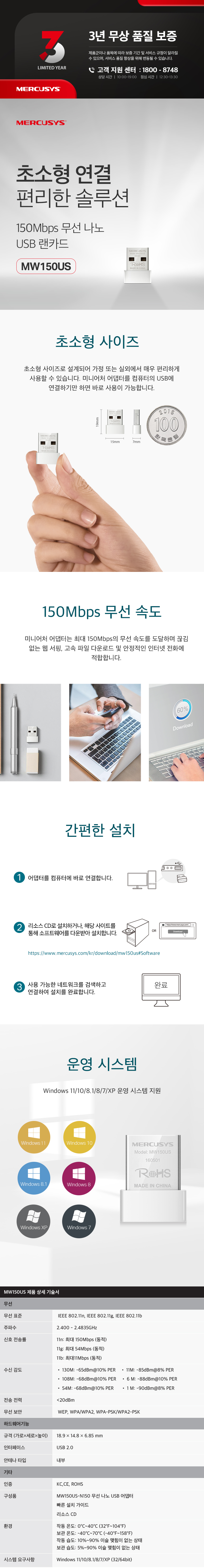 ■ KCC인증대상 여부 : R-C-PWn-MW150US